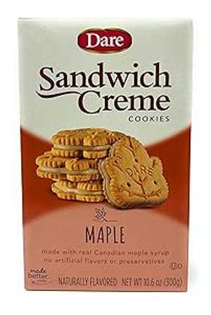 デア社のメープルクリームクッキーは、サクサクとしたクッキー生地に100%純粋なメープルシロップを使用したクリームをサンドしたもので、その品質と風味から多くの人々に愛されています。